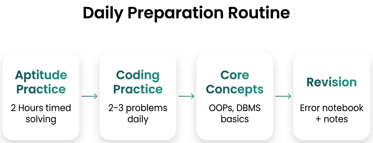 | Aptitude Practice | IndiaBix, PrepInsta | Solve timed questions daily |