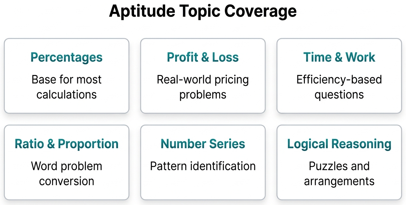 | Aptitude Test | Speed, accuracy, and basic concepts | Timed practice and pattern recognition |